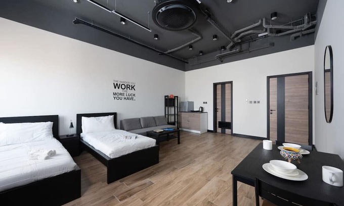 Modern studios designed with comfort and style in mind, offering you a peaceful stay away from the hustle and bustle of the city. The neighborhood is calm and surrounded by offices and workspaces, making it an excellent choice for guests who need a quiet place to stay with the convenience of working outside the home when needed.