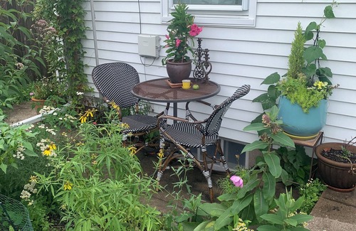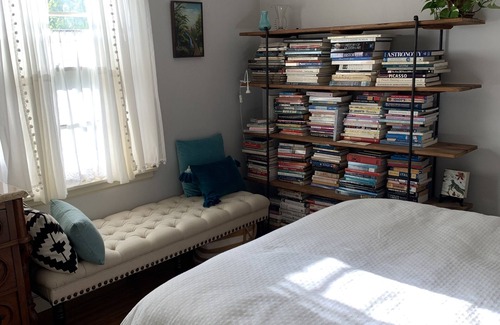 Wake up to the sounds of birds. Private spaces for one person in a shared home. Quiet sanctuary with an office to work remotely or take meetings with morning sun and a sitting area to enjoy morning coffee. Kitchen with sitting area and self serve breakfast. Relax in backyard garden. Off street parking spot. Private Bathroom with shower and tub. Bedroom with closet, afternoon sunbeams and a cozy queen bed, smart tv, book library and chaise lounge to kick back and relax. The backyard garden has various seating options and an umbrella and a charcoal grill is available to use.