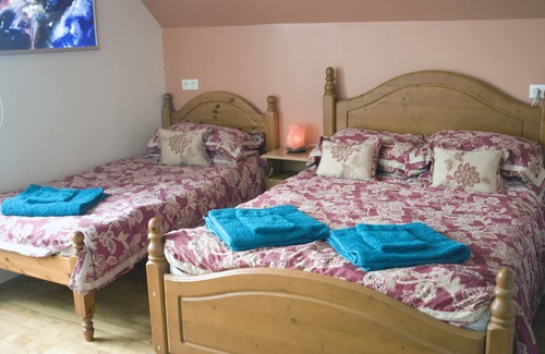 We offer 1 double room and 1 family room (for 3 or 4 people) in the heart of the Normandy countryside. The rooms may be booked separately or together. We offer organic home cooked meals to order which must be reserved in advance. We are only 12 km from the waterfalls in Mortain and the Mont St Michel is 45 minutes away by car.