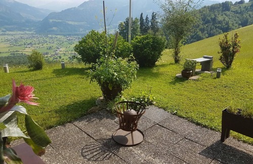 Situated at 750 metres above sea level and 4 km outside the village centre, our small holiday flat offers absolute tranquillity and a fantastic view of the surrounding mountains in the geographical centre of Switzerland.