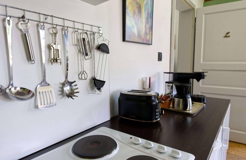 This 1-bedroom, 1-bathroom rental features a living room and a fireplace. Bathroom amenities include a hair dryer, a bidet, and towels. Prepare a home-cooked meal in the kitchen, complete with an oven, a stovetop, and a refrigerator, as well as a coffee maker, cookware, and a toaster. And you won't have to pack extra clothes, because you'll have a washer and dryer, too.