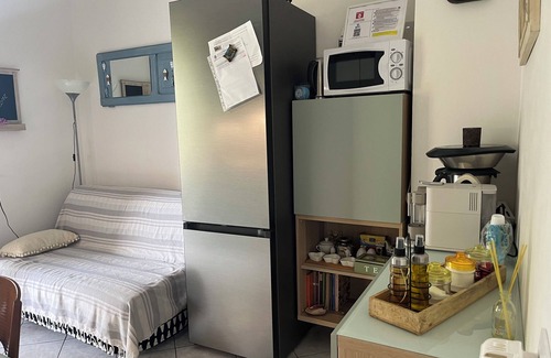 Restored small villa (45mq)at ground floor, placed in a quiet corner at 50mt. from beach, equipped as follow: