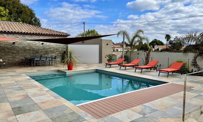 Quiet villa near hyeres les palmiers has 3 Bedrooms , 3 Bathrooms, and max occupancy of 6 people. The minimum rental for this property is 1 nights, but this can change depending on the season you plan on staying. Previous guests have given good rated it, and VRBO labeled it a top-rated House because of the excellent services rendered by the owner or manager of this House, and has consistently provided great experiences for their guests. Most families or guests that use it recommend it to their friends and some of them are repeat guests. House has a friendly neighborhood, and the La Farlede has interesting places to visit. If you want to learn more about the House in La Farlede, such as places to visit and things to do nearby, you can check below to learn more.