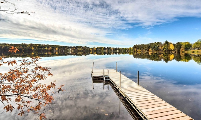 Quiet Waterfront Round Lake Home w/Hot Tub is located in Dresser. Quiet Waterfront Round Lake Home w/Hot Tub provides accommodation, featuring Pet Friendly, Fireplace/Heating, Entertainment, among other amenities. This Cabin features Pet Friendly, Fireplace/Heating, Entertainment, to make your stay a comfortable one.