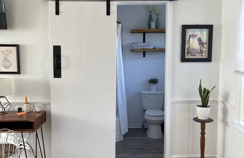 A newly renovated studio apartment with all the amenities you will need nestled in a quiet neighborhood with great walking and bike riding. Perfect for a single or couple retreat. Close to downtown, restaurants, and shops. Private parking. Relaxing. We are also pet friendly and the property has a small fenced dog run (through the gate that has "woof").
