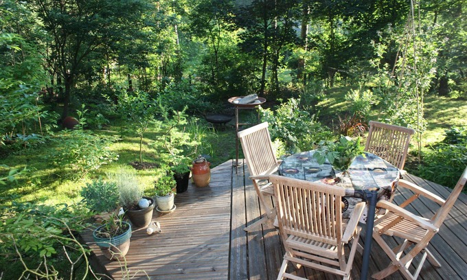 The house has a fully equipped kitchen, a living room with a fireplace, a wintergarden with its own access, a bedroom with a sky bed and a bathroom with shower and WC, as well as a large terrace where you can have breakfast or have a barbecue in the morning. The decor is equally comfortable and stylish designed by an artist.