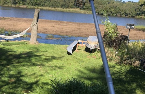 Rent this nicely furnished cottage to enjoy the beauty of nature on the Wisconsin River and Lake Wisconsin in this rustic, yet cozy river/lake cottage. Beautiful views out the large living room windows look onto green islands, sandbars and the distant Baraboo Hills and the shores of the Wisconsin River as it opens up into Lake WI. Deck with great view of river and hills.