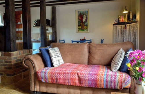 Beamed, rural cottage for couples, with Kent and East Sussex Steam Railway close by, Hastings and Rye nearby.. Ground Floor:
