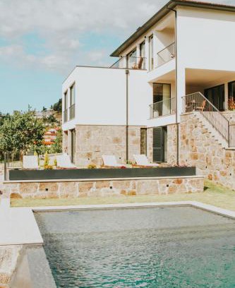 Offering river views, Quinta D'Joanes Douro in Resende offers accommodations and a shared lounge. Wellness packages is available for guests. There's a sun terrace and guests can access free Wifi and free private parking. Featuring a balcony, the units offer air conditioning and have a flat-screen TV and a private bathroom with shower and bathrobes. There's also a well-equipped kitchen in some units equipped with a microwave, a fridge, and kitchenware. At the farm stay, each unit comes with bed linen and towels. Guests can make the most of the garden, infinity pool, and yoga classes offered at the farm stay. Guests at Quinta D'Joanes Douro will be able to enjoy activities in and around Resende, like hiking. The farm stay has a picnic area where you can spend the day outdoors. Douro Museum is 14 miles from the accommodation, while Our Lady of Remedies Sanctuary is 15 miles away. Vila Real Airport is 26 miles from the property.