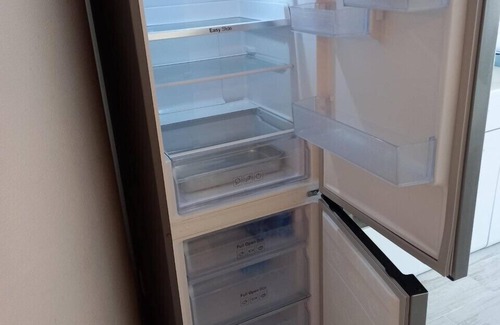 Kitchen with (Refrigerator, Ceramic hob, Microwave, Washing Machine, Iron).