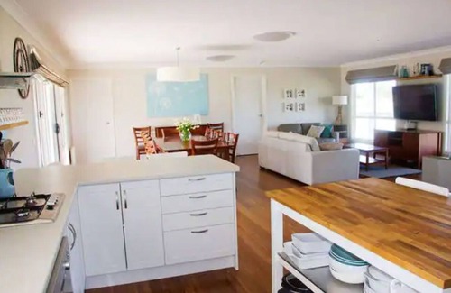If you are seeking the ideal wedding accommodation near Wilson's Promontory, look no further than Quintana - Family Friendly Retreat. This spacious property is designed to cater to large groups, making it the perfect backdrop for your special occasion.