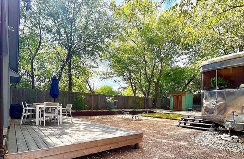 This 3 bedroom 2 full bath home is the destination in Austin for touring bands but is now also available to you for your Austin getaway! Just a quick 10-minute drive to downtown, the University of Texas, and the trendy East Austin hotspots. The Mueller development is only 5 minutes away, complete with an array of shops, restaurants, and a vibrant farmers market.