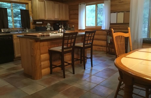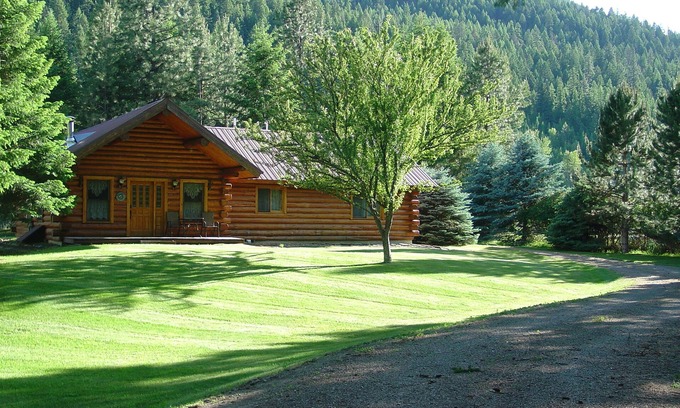 Welcome to the Claymore. This Amish built log home is a work of art all unto itself. This tastefully decorated home is ready for your romantic escape or your quiet and restful vacation to recharge your batteries. High speed internet makes it a good choice for extended stay work-cations. It is a world away from the every day but only 7 miles to town. Just steps away from the gorgeous green waters of the Kootenai River where you can catch your own supper or simply relax and watch the river float by. The cooks kitchen is ready to save you trips out for meals...this is our part time home so it is fairly well equipped for quick & easy meals, baking and even seven course dining nights. The master has a king size bed with shower en suite. The secondary bedroom has a luxurious queen. There is a reading nook with books, dvds and adult board games in the main hall, as well as the centrally located laundry closet and second bathroom with an antique tub for soaking away the effects of a day of play in this beautiful corner of Montana. The loft has two twin beds and a view of the river as well. Fast 50 down/50 up wifi powers up all your devices, log into your streaming services on any of the 3 smart tvs...or go old school with one of our many dvds. (Work-cation? Internet up to 500 down/50 up available with 3 days notice for added fee). There is a picnic table on the river bank for dining alfresco. Covered porches on the front and back of the house are perfect for morning coffee and conversation or evening wine and appetizers. Sleeping in late is one of our favorite things so both bedrooms have blackout drapes to combat the early appearance of the summer sun. This house is perfect at recharging your batteries and reconnecting with your spouse...we think there is magic in it.