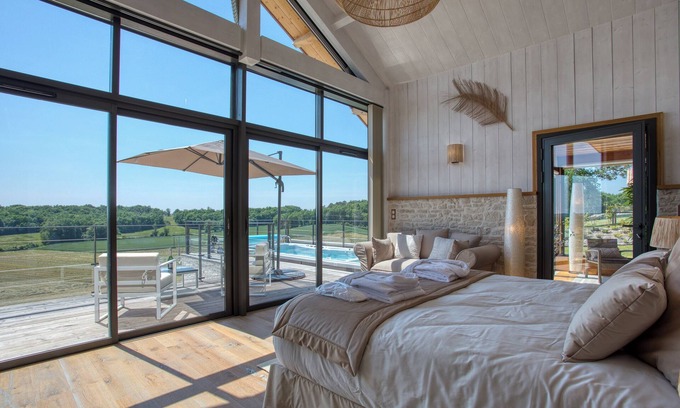 Best-rates for the Eymet cabin starts from $458 per night with includes Spa, Restaurant, Guest Services, Entertainment, Barbecue/Outdoor Cooking, Child Friendly, Parking, Accessibility, Bedding/Linens, Kitchen, Laundry, Air Conditioner, Balcony/Terrace, Hot Tub, Internet, Private Pool, Sports/Activities, Wellness Facilities, Breakfast, Pool, Security/Safety with all other amenities. Perfect for Weddings is committed to ensuring every guest experiences a comfortable and extraordinary stay, whether planning a romantic getaway, a honeymoon, a pet-friendly stay, or celebrating with the entire wedding party.