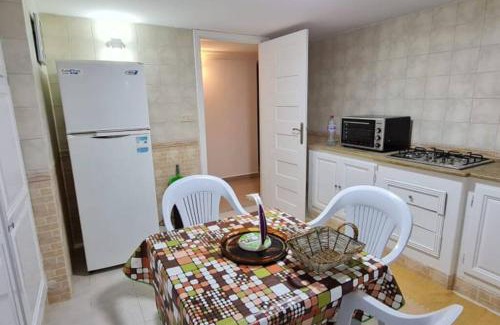 Résidence Asma appart A0 offers accommodations in Kelibia, a 4-minute walk from Fatha Beach. With garden views, this accommodation provides a terrace. The air-conditioned apartment is composed of 2 separate bedrooms, a living room, a fully equipped kitchen with a fridge, and 1 bathroom. A flat-screen TV with satellite channels is provided. Tunis–Carthage Airport is 68 miles away.