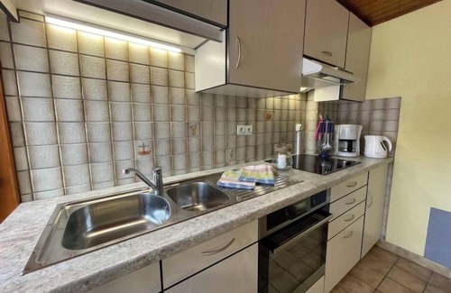 2-room apartment 54 m2 on 2 levels. Object suitable for 2 adults + 3 children. With sloping ceilings, beautiful furnishings: entrance hall. Kitchen (oven, 4 induction hot plates, toaster, kettle, electric coffee machine) with dining table. Shower/WC. Oil heating. Upper floor: living room with 1 double sofabed (140 cm, length 200 cm), TV (flat screen). 1 children's room with 3 beds (90 cm, length 200 cm). Facilities: washing machine, iron, children's high chair, baby cot for up to 2 year olds. Internet (WiFi, free). Parking. Please note: suitable for families. Non-smokers only. Private entrance. Bookings accepted for holiday purposes only.