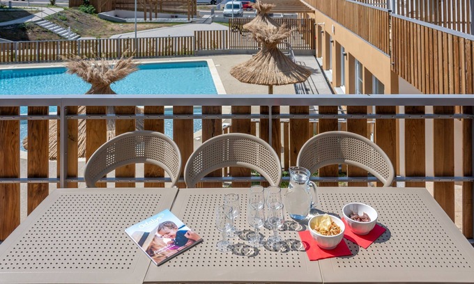 Best-rates for the Résidence Odalys Bleu Canopée starts from $155 per night with includes Ocean View, Bedding/Linens, Laundry, Parking, Pool, Wheelchair Accessible, Balcony/Terrace, Child Friendly, Oceanfront, Spa, Internet, Kitchen, Accessibility, Security/Safety, Wellness Facilities, Fireplace/Heating, Guest Services, Pet Friendly, View with all other amenities. Perfect for Weddings is committed to ensuring every guest experiences a comfortable and extraordinary stay, whether planning a romantic getaway, a honeymoon, a pet-friendly stay, or celebrating with the entire wedding party.