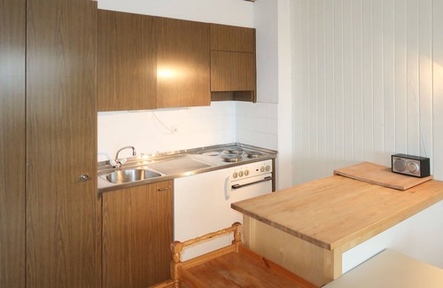 "Résidence Velan", 2-room apartment 52 m2 on 1st floor. Comfortable and tasteful furnishings: living/dining room with cable TV. Exit to the balcony. 1 room with 2 beds (80 cm, length 200 cm). Exit to the balcony. 1 children's room with 1 x 2 bunk beds (90 cm, length 190 cm), 1 pull-out bed (1 pers.). Open kitchen (3 hot plates, oven) with hatch. Bath/WC. Balcony, west facing position. Balcony furniture. Very beautiful view of the mountains and the countryside. Facilities: hair dryer. Please note: non-smokers only. Maximum 1 pet/ dog allowed.