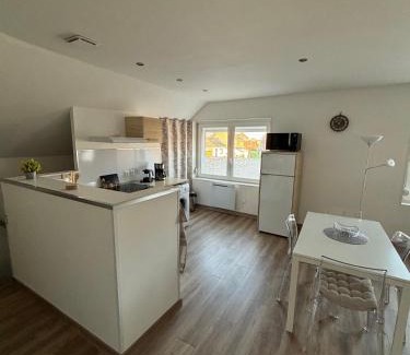 A recently renovated apartment, RêvAppart offers accommodations in Haveluy. Among the facilities at this property are a 24-hour front desk and bicycle parking, along with free Wifi throughout the property. Douai Train Station is 20 miles away and Matisse Museum is 21 miles from the apartment. This apartment includes 1 bedroom, a living room and a flat-screen TV, an equipped kitchen with a dining area, and 1 bathroom with a bath and a washing machine. Towels and bed linen are offered in the apartment. This apartment is non-smoking and soundproof. A baby safety gate is also available for guests at the apartment. Valenciennes Train Station is 9.3 miles from RêvAppart, while Train Station of Cambrai is 20 miles from the property. Lille Airport is 26 miles away.