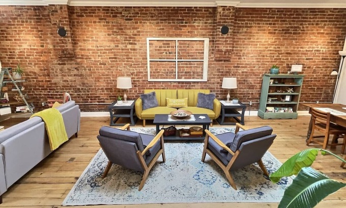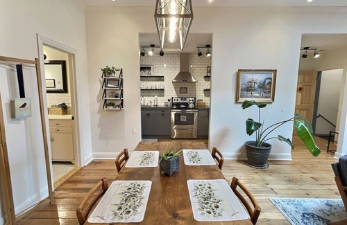 Experience the charm of R&R Guest House, a renovated 2BR apartment in a historic downtown Moberly building. Enjoy exposed brick walls, a stunning skylight, and a fully stocked kitchen. Sleeps 5 with a queen bed, twin loft beds, and a pull-out couch. Relax on the outdoor patio or explore nearby parks, shops, and local attractions. Self check-in for a seamless stay, with local hosts available if needed. Book your downtown retreat today!