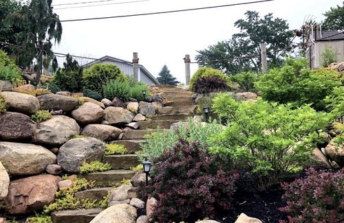 Outside: All vehicles will be parked on the lot behind the home. There is enough space for multiple vehicles to fit. There are 20 natural stone steps that lead down to the house -please note- there is NO hand rail. We suggest unloading in the front of the home and then parking around back.
