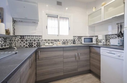 It has two separate bedrooms, one with a double bed and the other with two single beds. In addition to a living room, open kitchen and a furnished outdoor balcony to enjoy any outdoor meal.The flat is located on the ground floor, so it has easy access from the street. Only the dining room has air conditioning, but thanks to the size of the flat this makes it more than enough to cool the whole flat and keep it at a pleasant temperature during the hottest days.