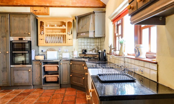 Amenities: Oil central heating with multi-fuel stove and open fire. Electric oven, gas hob, microwave, fridge/freezer, washing machine, tumble dryer, dishwasher, TV with Free-to-air channels, DVD, selection of books and DVDs. Fuel, power and starter packs for stove and fire inc. in rent. Bed linen and towels inc. in rent. Cot and highchair. Off road parking for 3 cars. Lawned garden with patio and furniture. Two well-behaved pets welcome. Sorry, no smoking. Shop 2 miles, pub 1 mile. Note: Theres an internal step up from the double bedroom to the en-suite. Note: Due to the property being close to an airport, there will be minimal, associated noise.