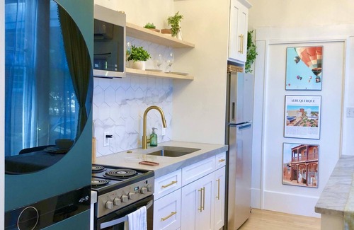 Radiant Historic Downtown Home I Lots of Light I Covered Parking is located in Downtown Albuquerque. Radiant Historic Downtown Home I Lots of Light I Covered Parking provides accommodation, featuring Fireplace/Heating, Internet, Kitchen, among other amenities. This Apartment features Fireplace/Heating, Internet, Kitchen, to make your stay a comfortable one.