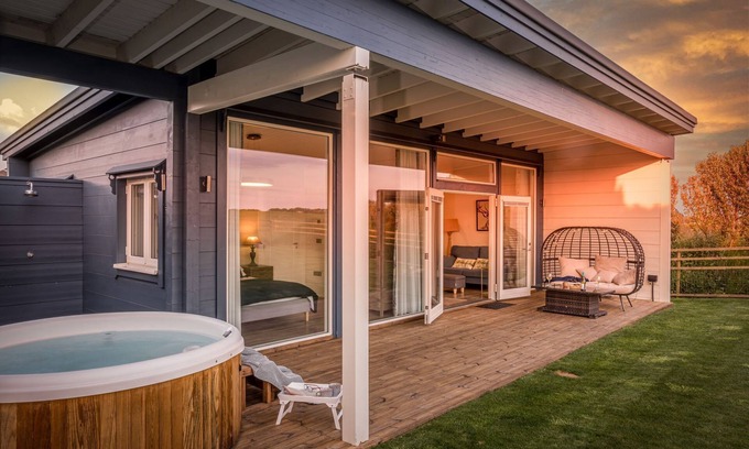 To the front of the lodge there's a decked patio where you'll discover a bubbling, private hot tub tucked away under the eaves - the best place from which to soak up the tranquil atmosphere and completely unwind, whatever the weather.