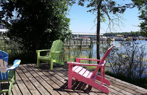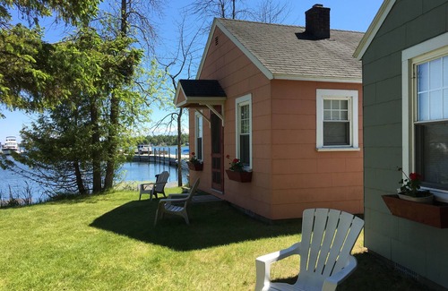 A marina view waterfront oasis in the center of town. Access to dock for fishing and relaxing. Outdoor picnic table, and barbecue available for use. Canoe, paddle boat and fishing boat available for rent. Located on the water. Walking distance to coffee shop, ice-cream stores, restaurants, bars, grocery store, church, boat launch, Tennis and Pickleball court etc. Sleeps up to 4 people: 2 bedrooms (two with queen size bed). Other rooms include: kitchen, bathroom with shower, toilet, sink, and living room. No Smoking permitted in cabin.