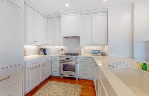 This property is part of Rainbow Row and just a short walk from all of the city's historic attractions, including the Pineapple Fountain, the Battery, City Market, and White Point Garden, to name a few. This gorgeous condo offers authentic Lowcountry living in the heart of Charleston. Staying here will place you steps away from the French Quarter and everything King Street has to offer. Beautiful, exposed brick walls showcase the space's historic 1770s origin, while high-end home upgrades and stylish decor provide complete modern comfort. The condo's fully renovated kitchen boasts a deluxe suite of appliances, including a Wolf-brand gas range/oven, a dedicated beverage fridge, and a massive, double-door fridge concealed by a matching cabinet facade. A plush sectional and smart TV are ready to welcome casual downtime between outings.
