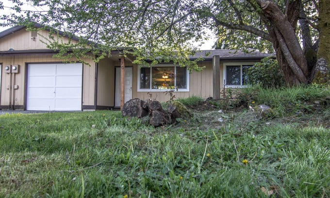 Spend your days discovering the natural beauty of the area before heading back to Rainforest Vibes. With over 900 sq ft, you’ll have plenty of room to move about without losing that quaint, cozy atmosphere when its time to cuddle up on the couch. The duplex shares the garage and pantry/kitchen wall so there are less noise concerns while sleeping soundly on the other end of the house. It is located on a family-friendly loop community and just a short walk away is an idyllic trail that borders Elk Creek.