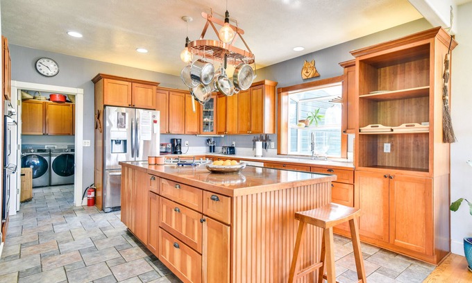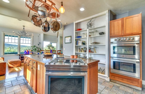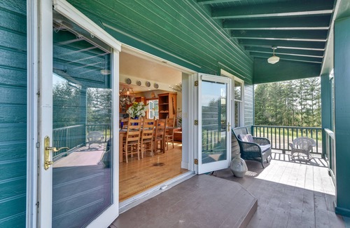 Seclude yourself in the rolling hills of northern Oregon while staying at this 3-bedroom, 3-bathroom vacation rental. This remote home boasts privacy among 20 lush acres allowing you to rejuvenate and refresh your brain after a week at the office. Just around an hour away from the coast, spend your days exploring the sleepy town of Astoria, enjoying a book by the wood-burning fireplace, cooking in the pristine kitchen, or going for a cool beverage on the porch overlooking the blueberry orchard.