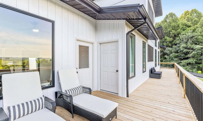 Tucked high on a hilltop in Southern Ohio, this cozy modern retreat wraps you in comfort the moment you arrive. With stunning views in every room, 2 bedrooms, a hot tub, gym, a calming indoor water fountain, and a wraparound porch with cozy seating made for slow mornings & starry nights, it’s the kind of place that instantly puts you at ease. Every detail was thoughtfully designed with love to help you rest, recharge, reconnect and feel right at home. A peaceful, restorative escape awaits!