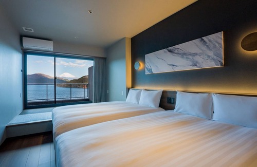 Enjoy a luxurious stay on the shores of Lake Ashi with a panoramic view of the torii gates of Hakone Shrine and Mt Fuji
