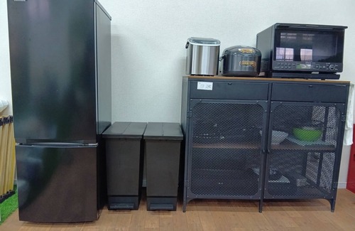 Cooking equipment includes refrigerator ice maker rice cooker oven range hot plate IH stove portable stove frying pan pot knife cutting board etc