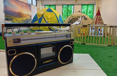 This is an indoor campsite that can be rented exclusively for one group