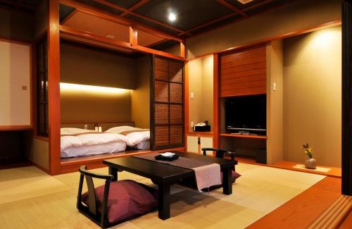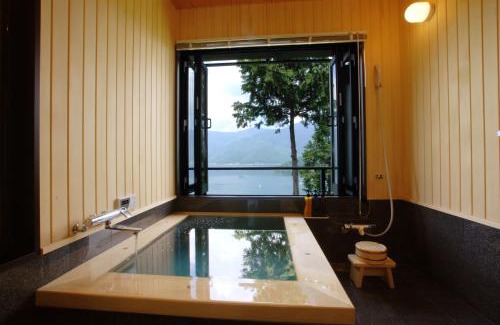 Overlooking picturesque Kawaguchi Lake in the serene Mount Fuji area, Rakuyu features comfortable guest rooms and natural hot spring baths. Free Wi-Fi is provided in the public area. Rakuyu is located a 5-minute drive from Kawaguchiko Station, and a free pick-up shuttle is provided. Popular Fuji-Q Highland amusement park is a 10-minute drive away. Rooms are fitted with chic furnishings and large windows, which offer plenty of sunlight and great lake views. A flat-screen TV and a fridge are provided in the room. The private bathroom includes free toiletries. The panoramic lake views and a cozy fireplace await guests in the lobby. Guests can rewind in the spacious hot spring bath, or reserve a smaller private bath at an extra charge.