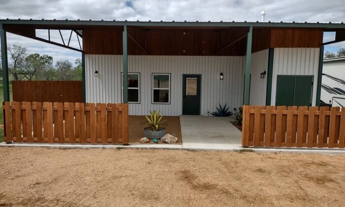 “Stay a while” at the Faulkner Ranch in Llano, Texas. Come enjoy your peaceful getaway that you’ve been looking for at our beautiful ranch located just four short miles from downtown Llano! Throughout your stay you will enjoy the wonderful surroundings of ranch life and be able to relax in our newly constructed 1bedroom/1bath Ranch hand cabin. This charming getaway includes a large 20 x 26 covered front pavilion furnished for your outdoor enjoyment.