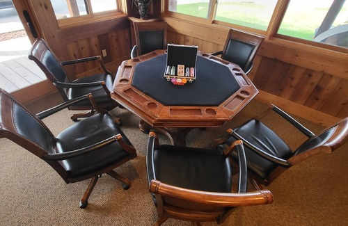 There’s plenty to keep everyone entertained in the game room which features a pool table, shuffleboard, and foosball table. Why not arrange your own tournaments to see who’s the champion at each game in your group? You’ll also find a poker table with cards and chips provided, great for the evenings when the kids have (finally!) gone to bed.