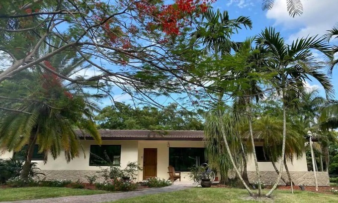 Cozy 1 acre ranch renovated house w/ pool table and pool, located just 30 minutes to beaches, FLL, South Beach. There are pubs, restaurants, Hardrock Casino and Sawgrass mall. All just minutes away (grocery, movies, bowling, ice skating, etc) Cleveland clinic also 10 minutes away. BBQ and take a dip in the heated pool to shake off your stress while you overlook your very own lake with lucious trees. BBQ included. You can bring your pet for an add'tl fee too!