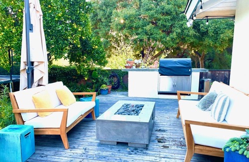 Nestled in the tranquil Hidden Valley neighborhood between Bel Air and Hope Ranch, this serene escape comfortably accommodates up to six guests—eight if you include the pull-out bed in the living room. Situated at the end of a peaceful cul-de-sac on a beautiful tree-lined street, the property borders a lush greenbelt with mature oak trees, offering a quiet, ranch-like atmosphere. Despite its secluded feel, it’s just two miles from Arroyo Burro Beach and four miles from downtown Santa Barbara. For added convenience, the home is equipped with a Tesla electric vehicle charging station. We only rent out our home occasionally when we are traveling, so it’s not available on a regular basis. This makes it a special opportunity to enjoy our space during your stay.