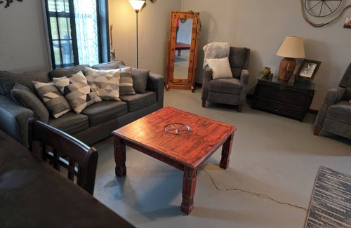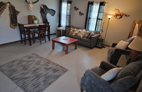 Our horse ranch and rescue is located just minutes south of Fort Worth in Burleson, Texas. You will feel right at home in our cute 1-bedroom farmhouse that features a cozy bedroom with a queen bed, a large vanity with 2 lighted mirrors and a large full length mirror perfect for getting ready for any event. If you plan on staying in, there is high speed internet/wifi and 2 Roku televisions ready for you to watch or stream your favorites.