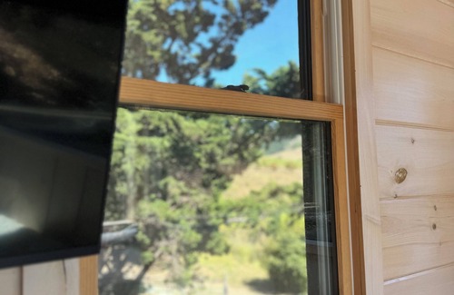 Your cozy getaway awaits in a working ranch located only 5 mins from downtown Cambria and less than 15 mins from Hearst Castle. Were typically located right outside the coastal fog belt so when it's foggy in town, we usually have sunshine and perfect temps. Take a short drive or hike to the tops of the property and enjoy rolling hills and an ocean view all to yourself. Nestled in a serene setting, this amazing property offers a comfortable retreat for guests. The cabin features a pleasant bedroom with a luxurious Cal king bed, ensuring a restful night's sleep for even the tallest of guests. With heating, AC, and a full size refrigerator, kitchenette, full size washer and dryer, and gas BBQ, your stay will be convenient and hassle-free. Stay connected with WiFi and charge your EV with the Level-2 charger for free! Whether you're seeking relaxation or adventure, this is the perfect base for your vacation. You're sure to make fantastic memories with a stay at our place!