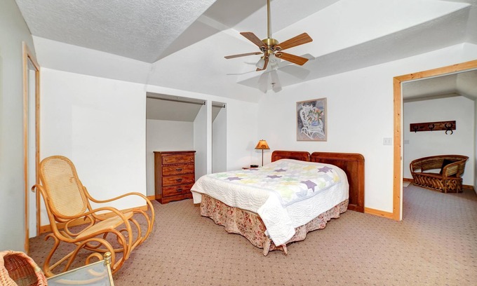 This delightful unit comfortably sleeps three and offers a range of amenities to ensure a pleasant stay. You will find a mini-fridge, microwave, coffee maker, and a full bathroom, all designed to make your experience as comfortable as possible. The spacious layout includes private outside stairs leading to your own tranquil retreat. Guests have access to communal areas featuring a large firepit and beautifully manicured lawns, which can serve as a romantic backdrop for pre-wedding gatherings or intimate receptions.