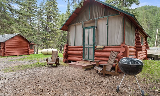 Welcome to Ranger. It is considered a 4 person cabin and sits near the kids play area and the fire pit. Ranger has a queen in the main cabin area and a pair of twins in the sleeping porch. It has a kitchenette with stove top and large fridge, Broadband WIFI, bathroom, gas fireplace for heat, all linens and utensils. We also provide a charcoal grill for some outdoor cooking. Leave home with food and clothing, Wickiup has the rest.