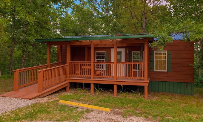 Ransom's Retreat #1 DKK w/Ramp is located in Leasburg. Ransom's Retreat #1 DKK w/Ramp provides accommodation, featuring Barbecue/Outdoor Cooking, Air Conditioner, Parking, among other amenities. This Cabin features Barbecue/Outdoor Cooking, Air Conditioner, Parking, to make your stay a comfortable one.