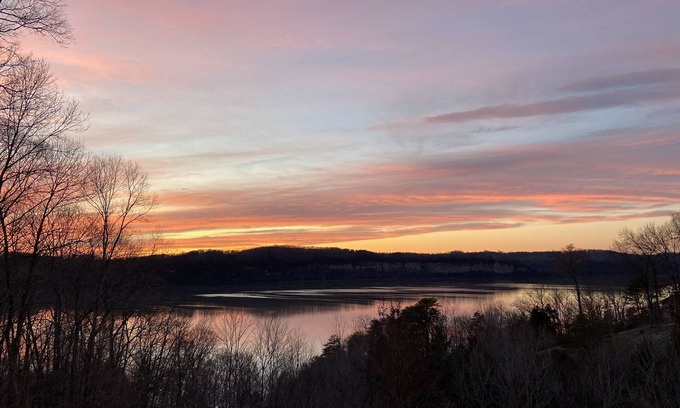1200 sq ft cozy cabin, 3 beds 1.5 bath. Master has a king size bed. 2nd bedroom has a queen & full size. The full bath has a separate shower room from sink and toilet to accommodate multiple guests. Open floor plan kitchen, dining, and living room. View of beautiful Lake Cumberland from each. Wrap around deck with outdoor dining option, grill and fire pit. Hammock is included!! Beautiful year round views of Lake Cumberland. Wildlife is often spotted in the area. This area is also great for walkers/runners. TV’s are equipped with a fire stick for streaming.