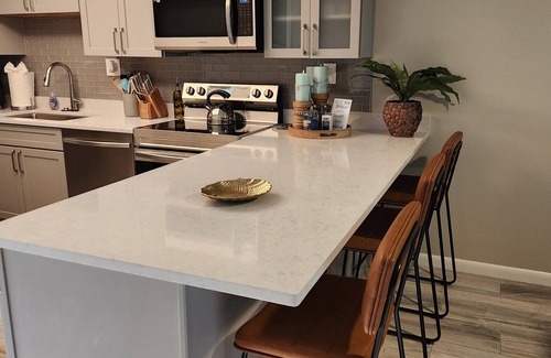 - Spacious Accommodations: With two bedrooms featuring a king bed and a queen bed, plus a fold-out sofa in the living room, this property comfortably sleeps up to six guests, making it perfect for family and friends attending your wedding.