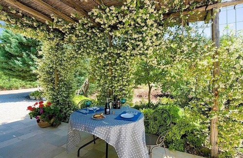 Oasis of tranquility surrounded by Mediterranean grounds, 6 acres of olive groves to explore. The land is dotted with plum, pear, apple, lemon, cherry, almond and fig trees which fruit at different seasons.
